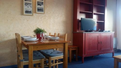 The apartment provides guests with a terrace, mountain views, a seating area, a flat-screen TV, a fully equipped kitchenette with a dishwasher and a microwave, and a private bathroom with bath and a hair dryer. A toaster, a fridge and stovetop are also available, as well as a coffee machine and a kettle. At the apartment complex, each unit is fitted with bed linen and towels.