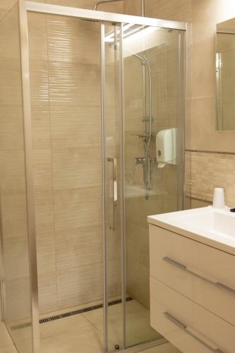 The quadruple room provides air conditioning and a wardrobe, as well as a private bathroom featuring a shower. This quadruple room features heating and a flat-screen TV. The unit offers 4 beds.