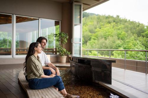 Guests at Takayama Associa Resort can unwind in indoor and outdoor hot spring baths with spectacular nature views.