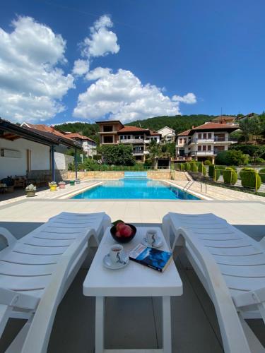 Vila SiVa, a property with a garden, is set in Ohrid, 8.3 km from Early Christian Basilica, 8.6 km from Port Ohrid, as well as 8.8 km from Church of St. John at Kaneo. This property offers access to a balcony, free private parking and free WiFi. The pool features a fence and garden views.