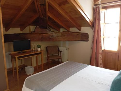 Rooms at Hotel San Roque feature rustic-style furniture and wooden beamed ceilings. Each room includes a flat-screen TV and a private bathroom with hairdryer.